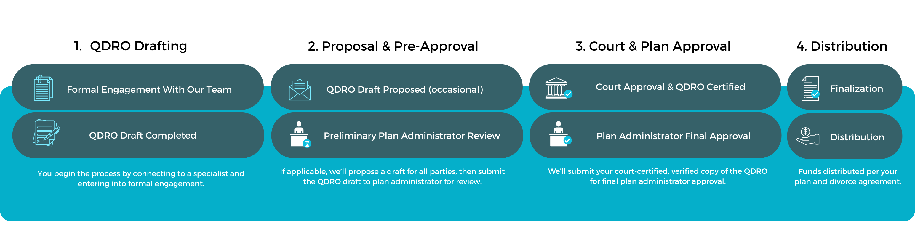 Our QDRO team of professionals has a combined 50 years of experience drafting QDROs. Our QDRO process keeps attorneys continually informed and reduces the time and cost associated with preparing a QDRO traditionally. Connect with an expert to get started today.